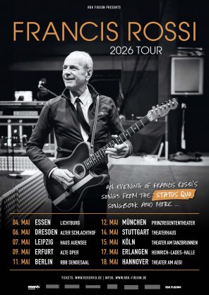 0 Comments Francis Rossi ” An Evening of Francis Rossi’s Songs from the Status Quo Songbook an more…” 15.05.2026 Köln, Theater am Tanzbrunnen […]